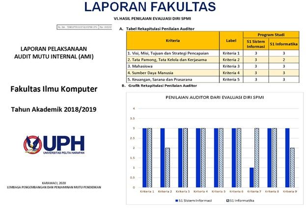 Pada tanggal 2 Juni 2020 – 14 Agustus 2020, Lembaga Pengembangan dan Penjaminan Mutu Pendidikan UPH menyelenggarakan kegiatan Audit Internal pada Program Studi untuk periode audit tahun akademik 2018/2019.
