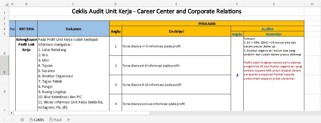 Pada hari Senin, 12 Juli 2021 dilaksanakan Audit Mutu Internal ke-XXIII untuk Unit Kerja Career Center & Corporate Relations untuk Tahun Akademik 2019/2020 yang dilakukan secara virtual melalui Ms.Teams dengan detail sebagai berikut: