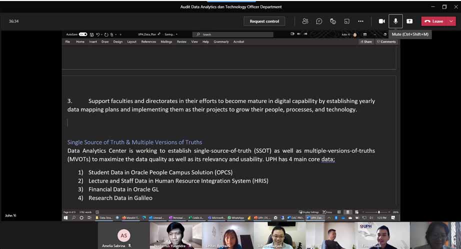 Pada hari Rabu, 21 Juli 2021 dilaksanakan Audit Mutu Internal ke-XXIII untuk Unit Kerja Data Analytics and Technology Officer Department untuk Tahun Akademik 2019/2020 yang dilakukan secara virtual melalui Ms.Teams dengan detail sebagai berikut:
