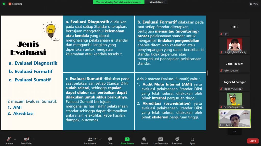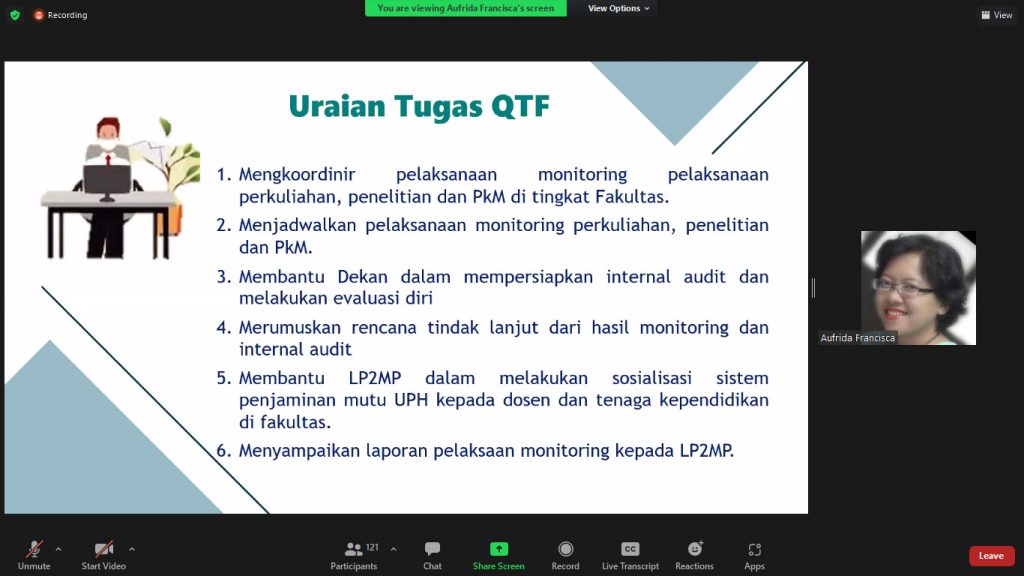 LP2MP mengadakan briefing Pelaksanaan AMI ke-XXIII untuk Auditee, QTF dan QO sebagai persiapan dalam menjalankan Audit dan memahami Ceklis, serta berkoordinasi lebih baik dalam rangka melaksanakan Audit Mutu Internal Program Studi TA 2019/2020 yang akan dilaksanakan pada bulan Desember 2021 dan Januari 2022.