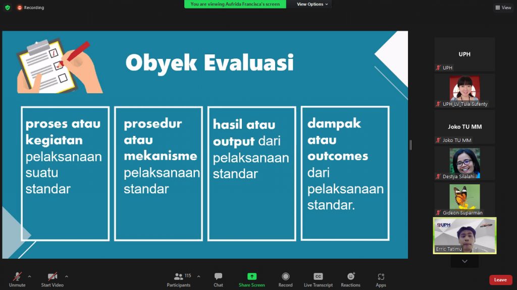 Briefing Pelaksanaan AMI ke-XXIII untuk Auditee, QTF dan QO diselenggarakan secara daring dengan menggunakan Zoom pada :